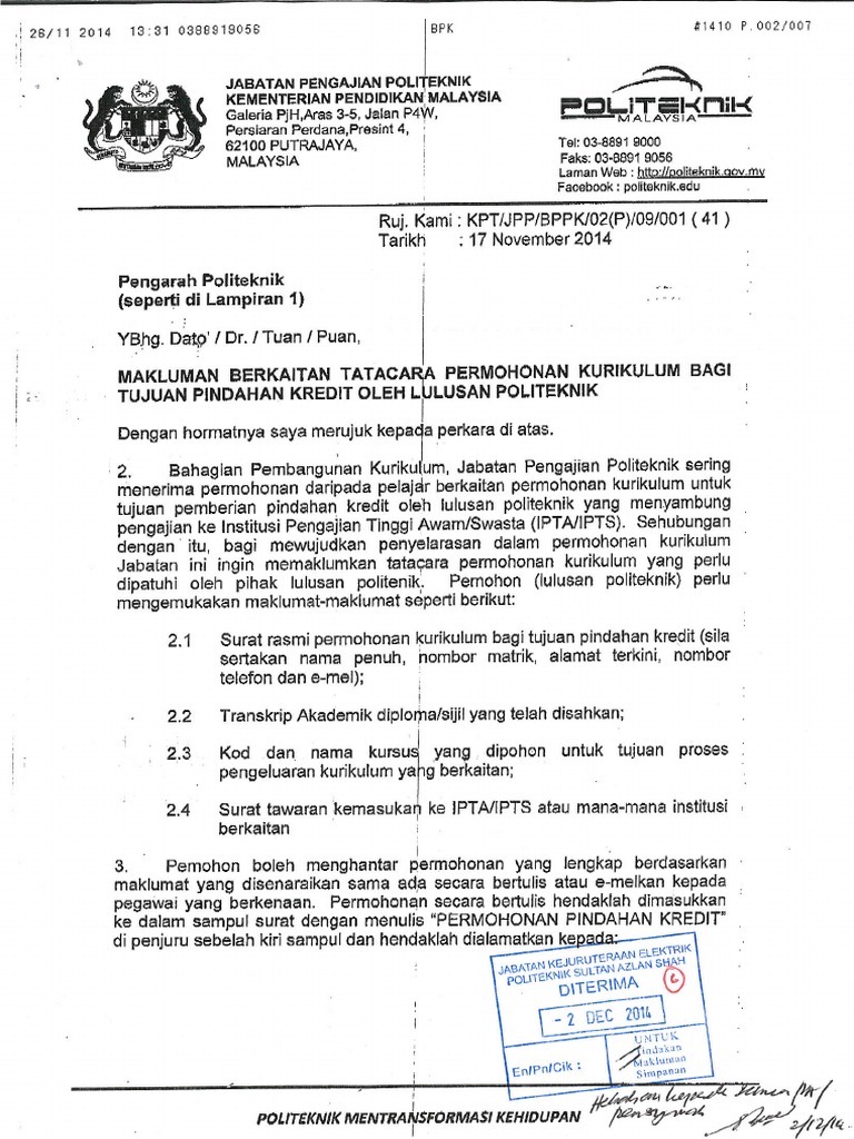 Surat Tatacara Mohon Kurikulum Untuk Pindah Kredit Pdf